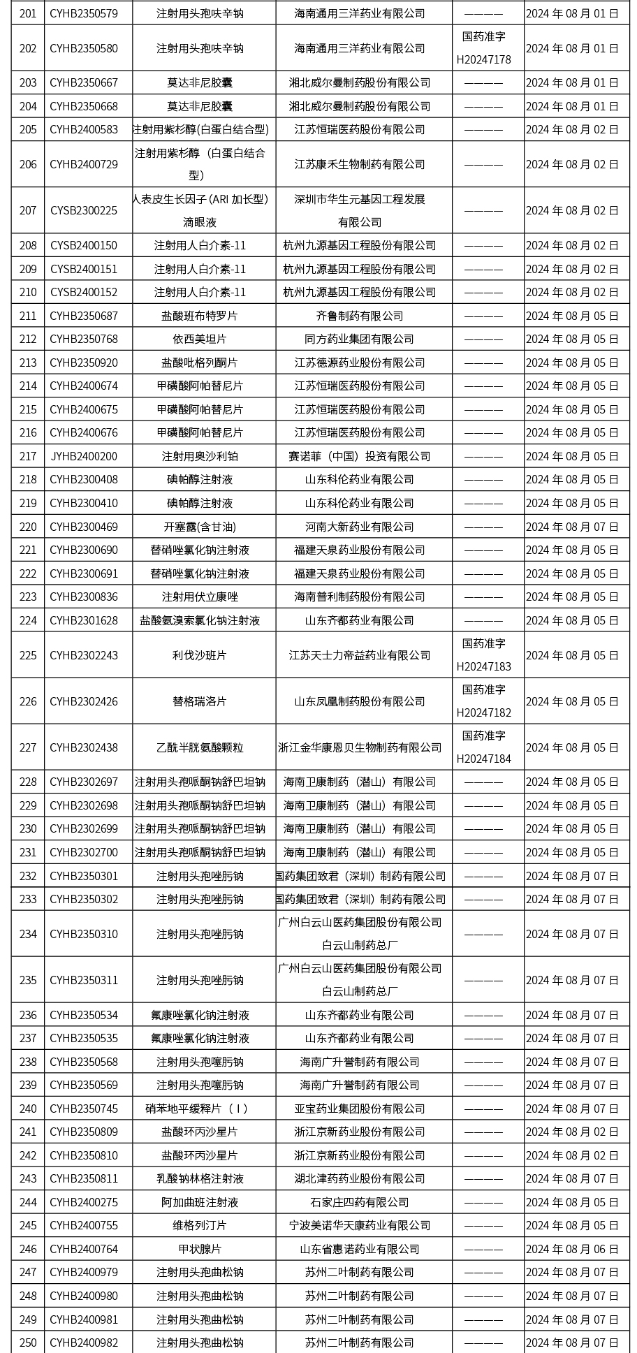 本周(截至2024年8月09日15:00),共發(fā)布藥品批準證明文件送達信息271個,其中一致性評價38個,注射劑118個。