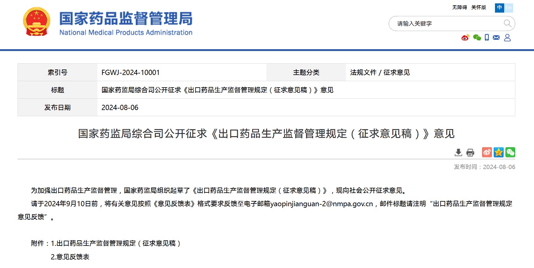 國家藥監(jiān)局綜合司公開征求《出口藥品生產(chǎn)監(jiān)督管理規(guī)定(征求意見稿)》意見