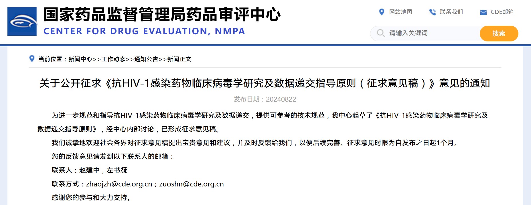 關(guān)于公開(kāi)征求《抗HIV-1感染藥物臨床病毒學(xué)研究及數(shù)據(jù)遞交指導(dǎo)原則(征求意見(jiàn)稿)》意見(jiàn)的通知