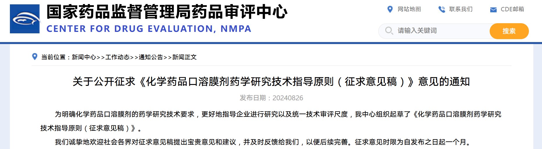 國(guó)家藥監(jiān)局藥審中心關(guān)于公開(kāi)征求《化學(xué)藥品口溶膜劑藥學(xué)研究技術(shù)指導(dǎo)原則(征求意見(jiàn)稿)》意見(jiàn)的通知