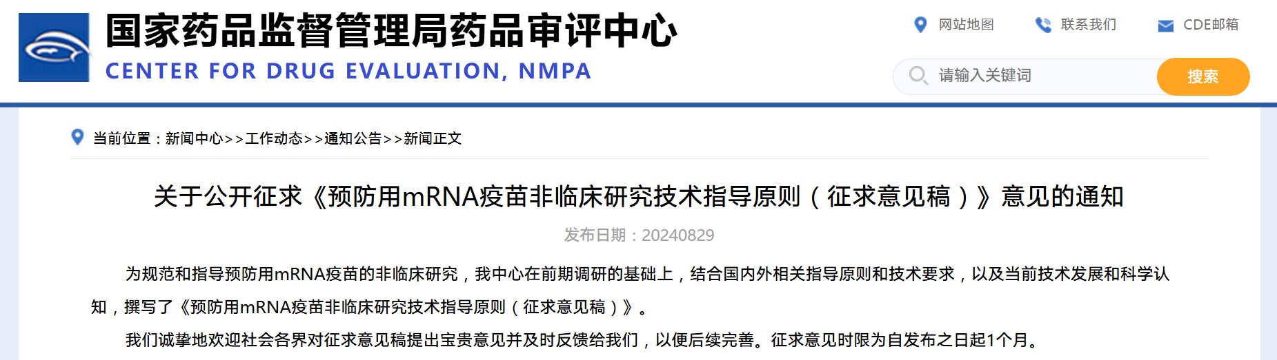 關(guān)于公開(kāi)征求《預(yù)防用mRNA疫苗非臨床研究技術(shù)指導(dǎo)原則(征求意見(jiàn)稿)》意見(jiàn)的通知
