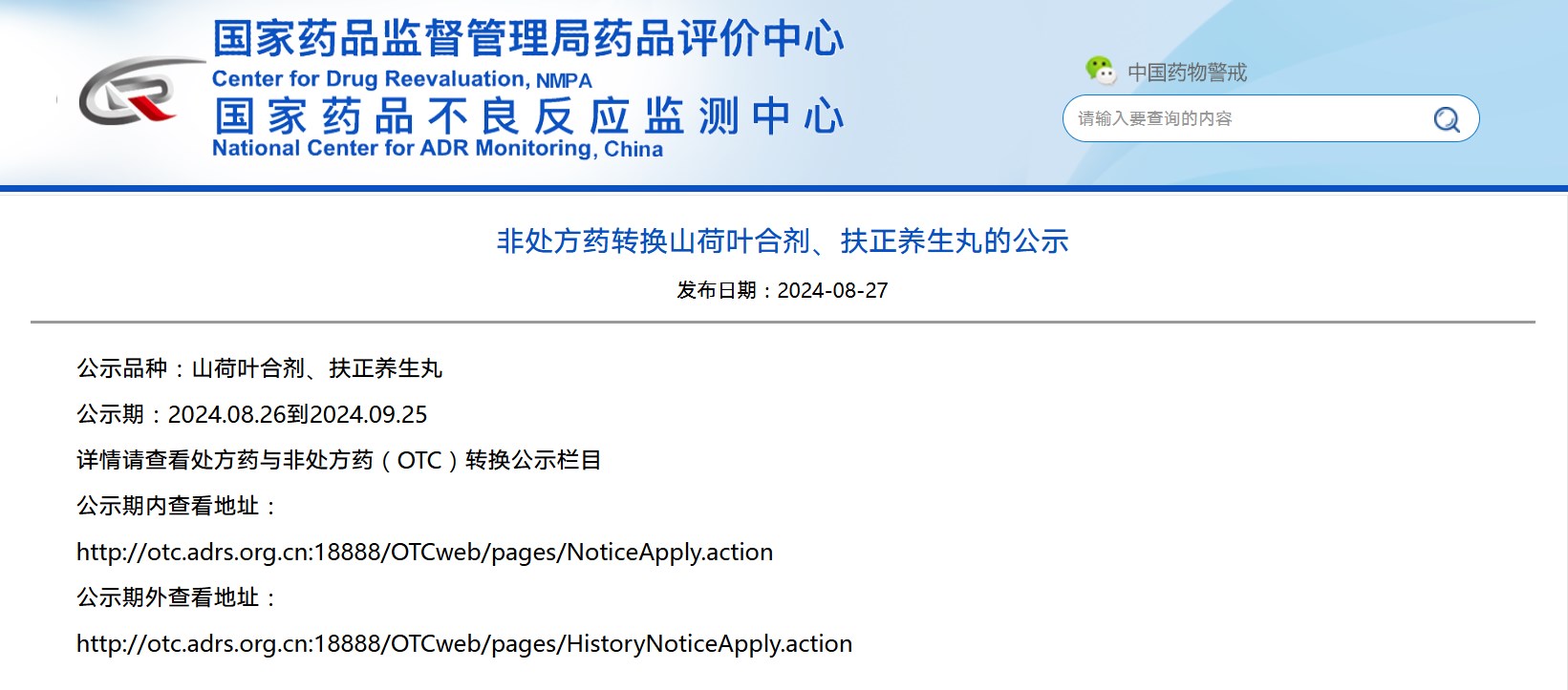 非處方藥轉(zhuǎn)換山荷葉合劑、扶正養(yǎng)生丸的公示