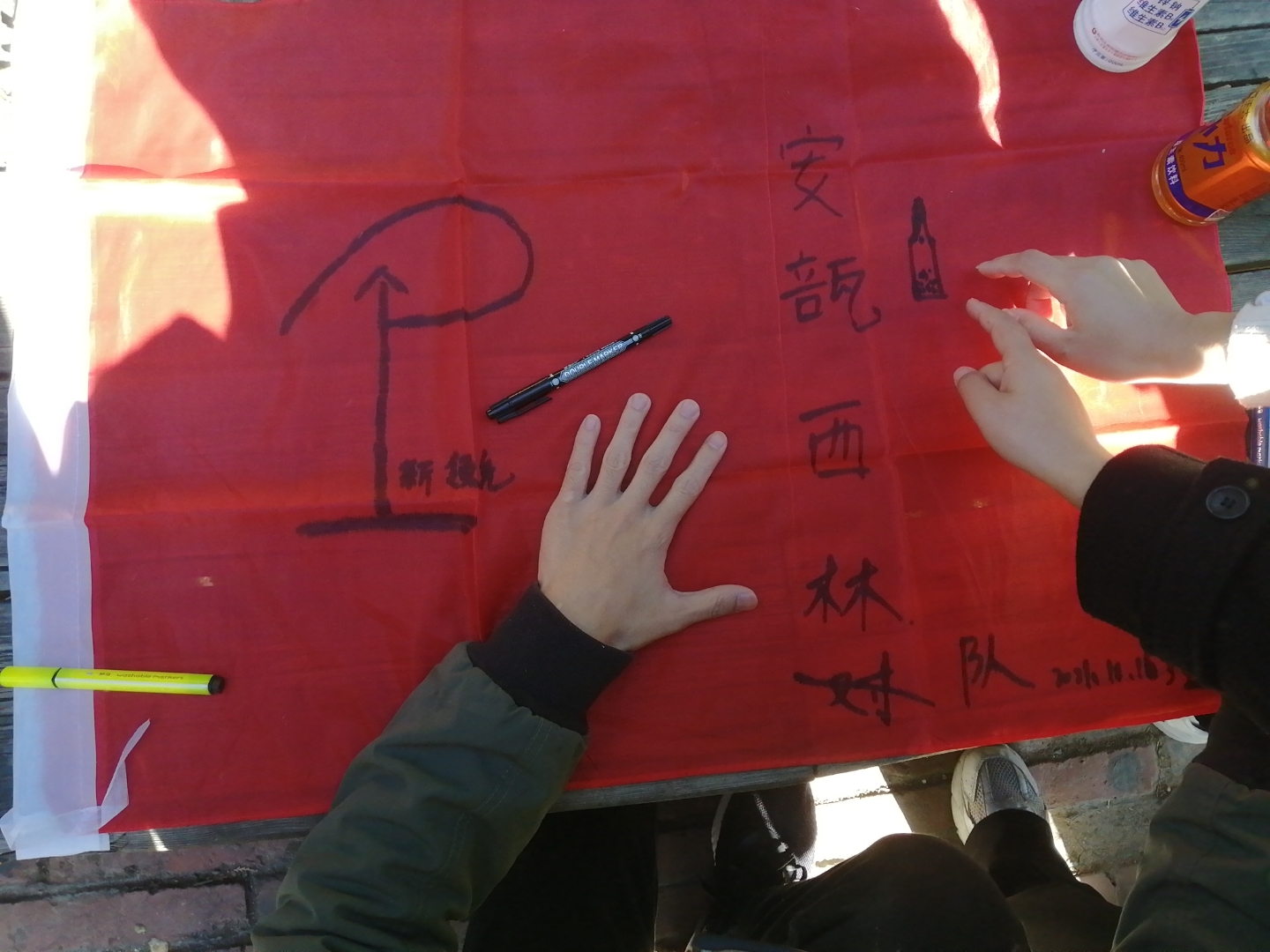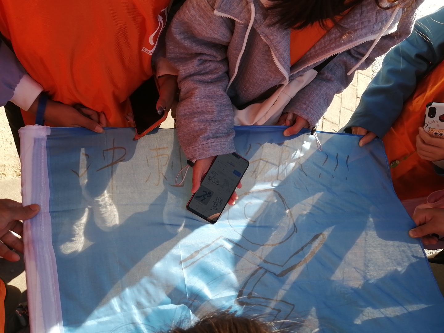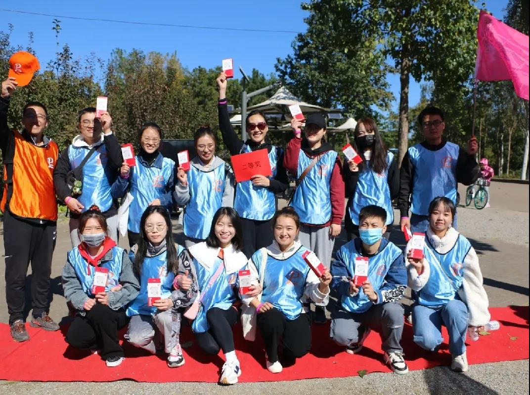▲ All team members hold high the team flag, listen to the autumn wind, step on fallen leaves, talk and laugh, and accompany their peers.